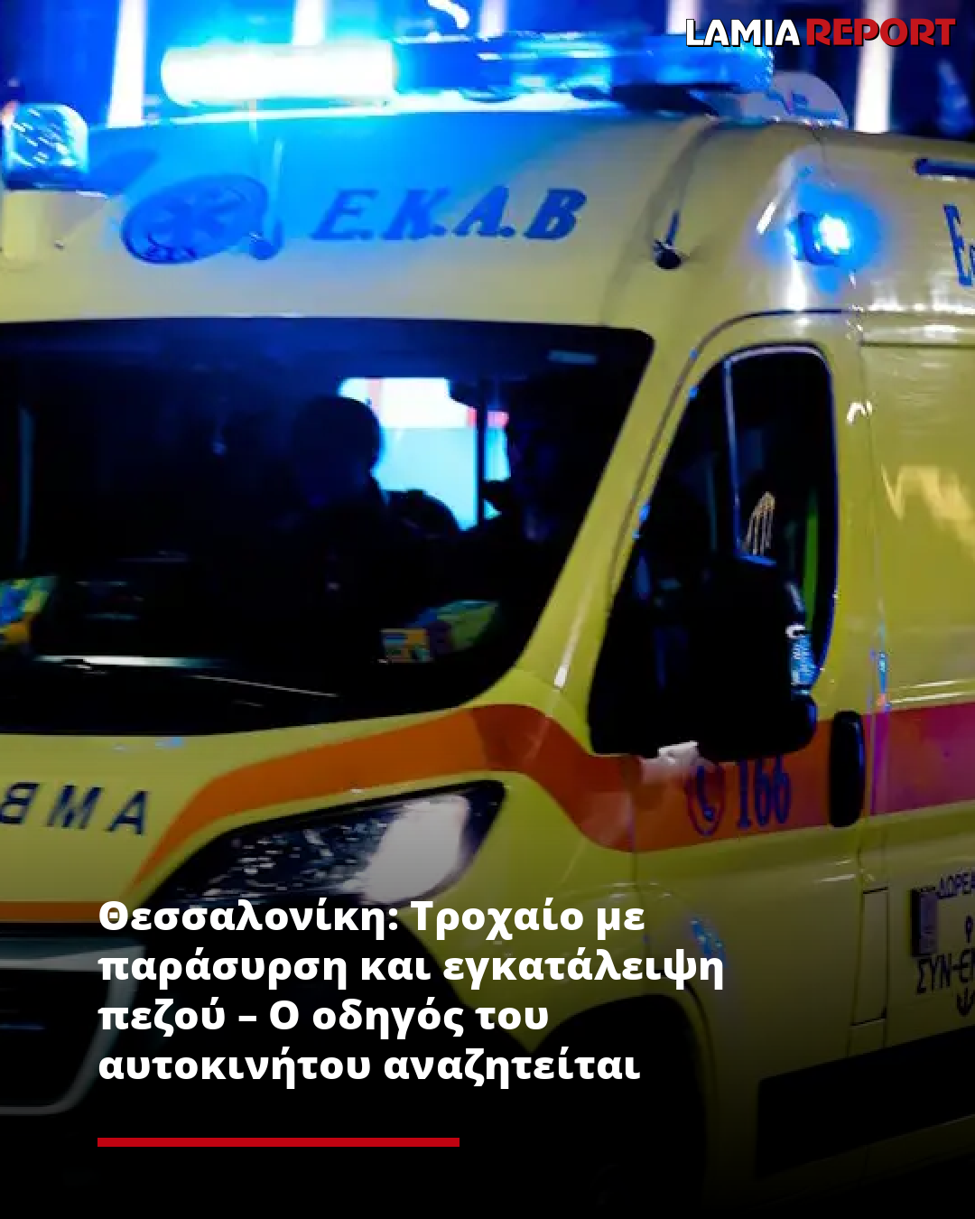 Αυτοκίνητο παρέσυρε και εγκατέλειψε πεζό στη Θεσσαλονίκη στις 6:30 το απόγευμα της Δευτέρας (05.01.2026). Ο πεζός τραυματίστηκε σοβαρά στο τροχαίο.