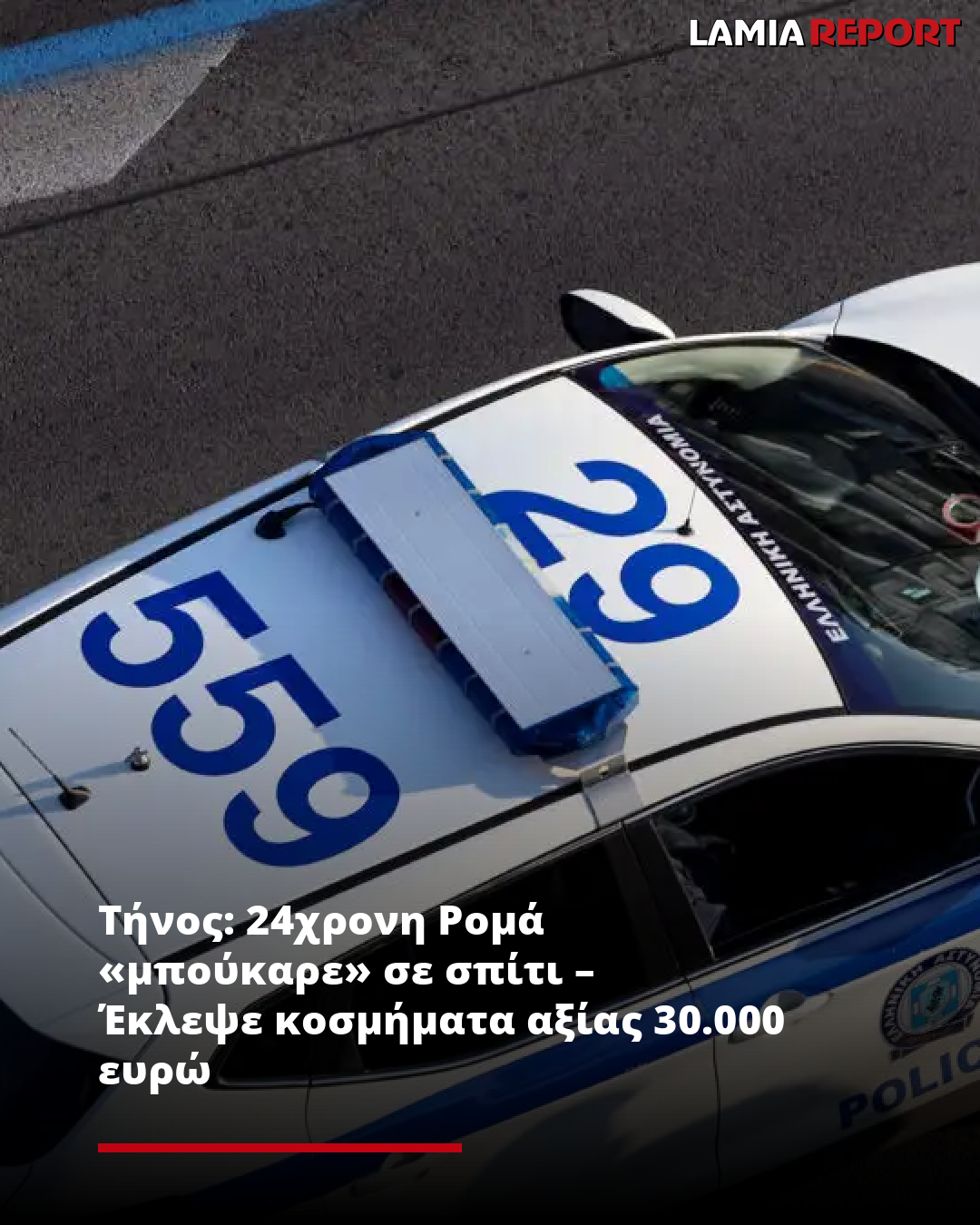 Η διάρρηξη σημειώθηκε χτες Τετάρτη (26.02.2025) σε σπίτι στην Τήνου, όπου η 24χρονη γυναίκα αφαίρεσε χρηματικό ποσό και κοσμήματα συνολικής αξίας 30.000 ευρώ.