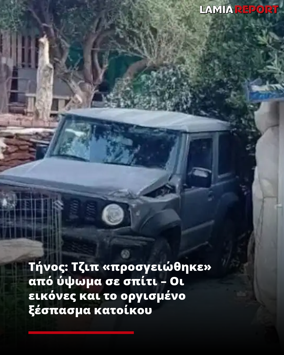 Τήνος: Τζιπ «προσγειώθηκε» από ύψωμα σε σπίτι – Οι εικόνες και το οργισμένο ξέσπασμα κατοίκου