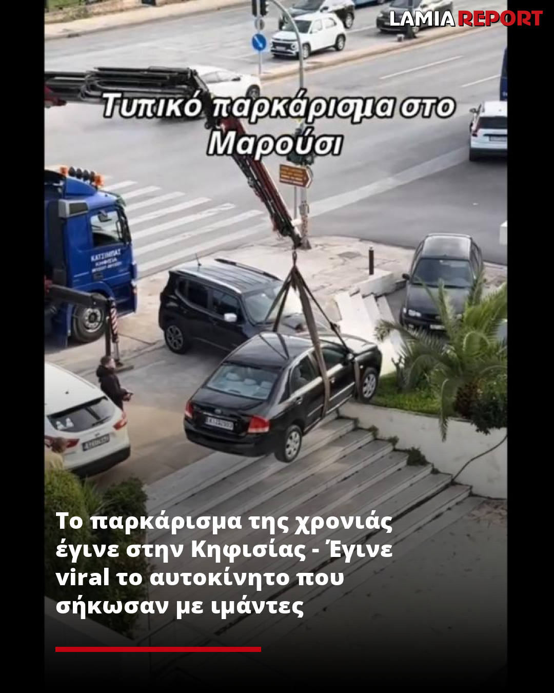 Το παρκάρισμα της χρονιάς έγινε στην Κηφισίας - Έγινε viral το αυτοκίνητο που σήκωσαν με ιμάντες