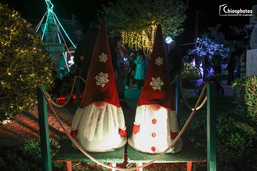 Ένα ξεχωριστό χριστουγεννιάτικο σκηνικό έχει στηθεί στη Χίο, όπου ένα εντυπωσιακό χωριό φτιαγμένο εξ ολοκλήρου από πλεκτά δημιουργεί εικόνες βγαλμένες από παραμύθι και προσελκύει το ενδιαφέρον μικρών και μεγάλων. Στο επίκεντρο, όπως σημειώνει το protothema.gr, δεσπόζει ένα χριστουγεννιάτικο δέντρο ύψους 10 μέτρων, το οποίο έχει κατασκευαστεί από 3.500 πλεκτά τετράγωνα μοτίβα, ενώ τα συνολικά εκθέματα του χωριού ξεπερνούν τα 30.