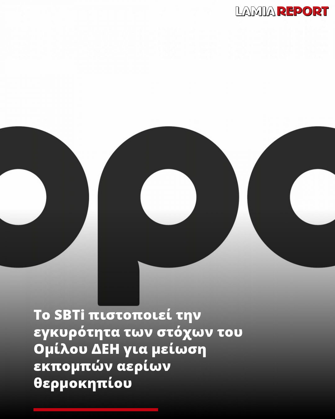 Την εγκυρότητα των βραχυπρόθεσμων και μακροπρόθεσμων στόχων του Ομίλου ΔΕΗ για μείωση εκπομπών αερίων θερμοκηπίου, πιστοποίησε η διεθνής πρωτοβουλία Science Based Targets initiative (SBTi)μετά από ενδελεχή διαδικασία αξιολόγησης. Το SBTi έκρινε ότι οι στόχοι μείωσης των εκπομπών αερίων του θερμοκηπίου που κατέθεσε ο Όμιλος ΔΕΗ βρίσκονται σε πλήρη ευθυγράμμιση με τον στόχο του 1,5°C,σύμφωνα με τη Συμφωνία του Παρισιού, και την επίτευξη πλήρους κλιματικής ουδετερότητας σε ολόκληρη την αλυσίδα αξίας μέχρι το 2040.