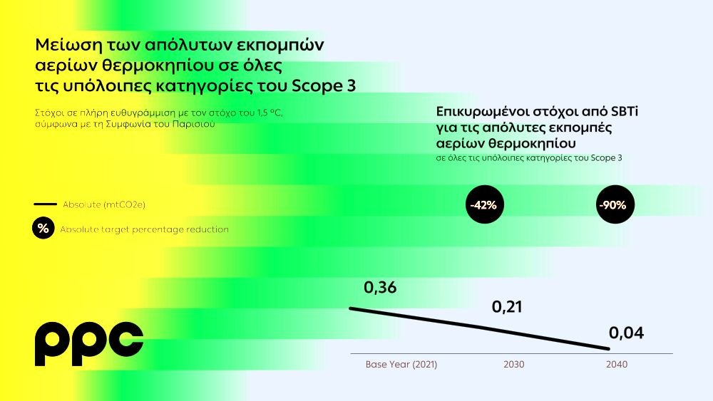 - μείωση90%των απόλυτων εκπομπών αερίων θερμοκηπίου σε όλες τις υπόλοιπες κατηγορίες του Scope 3.