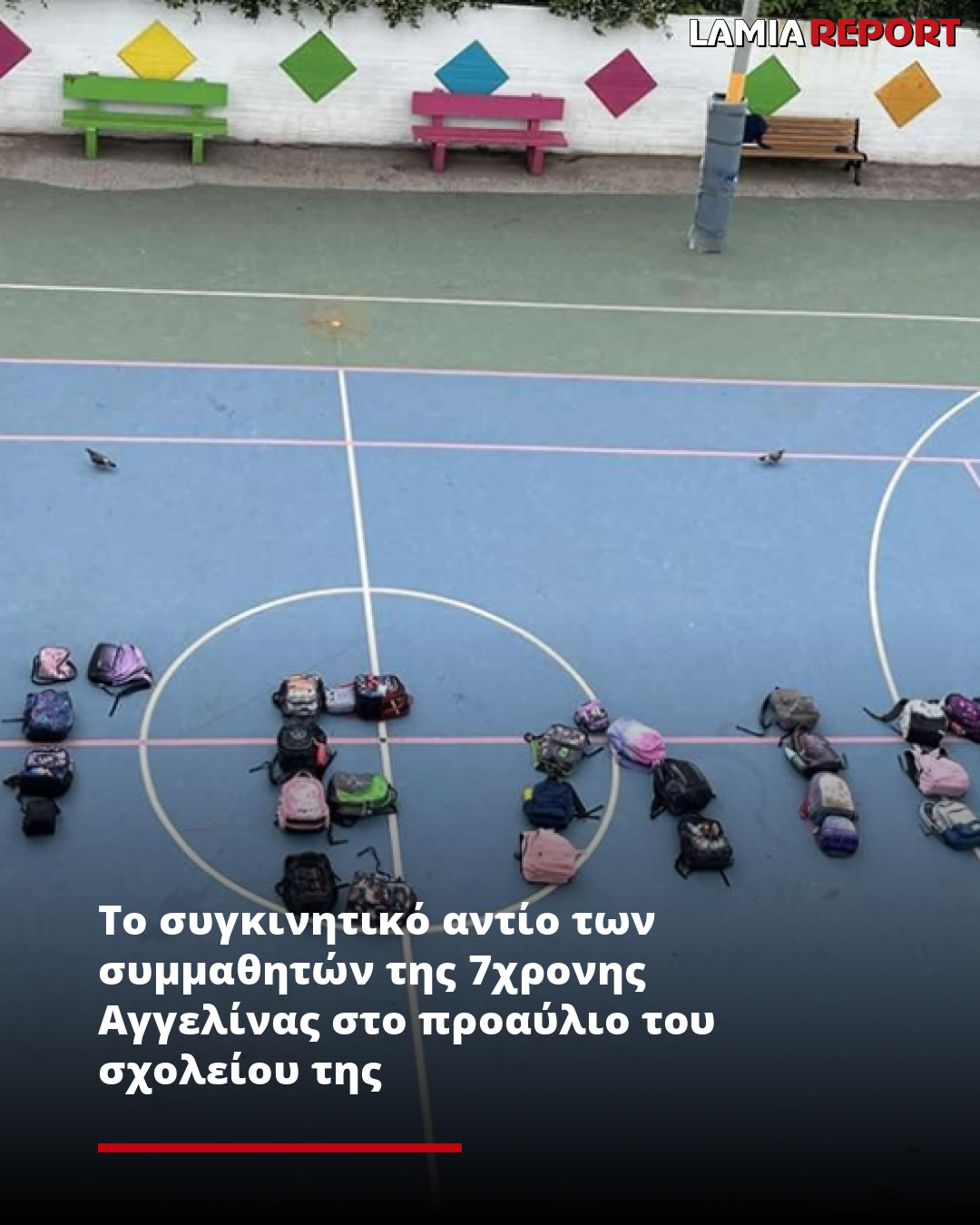 Τα παιδιά συγκεντρώθηκαν χθες στο προαύλιο του σχολείου και σχημάτισαν με τις τσάντες τους το όνομά της