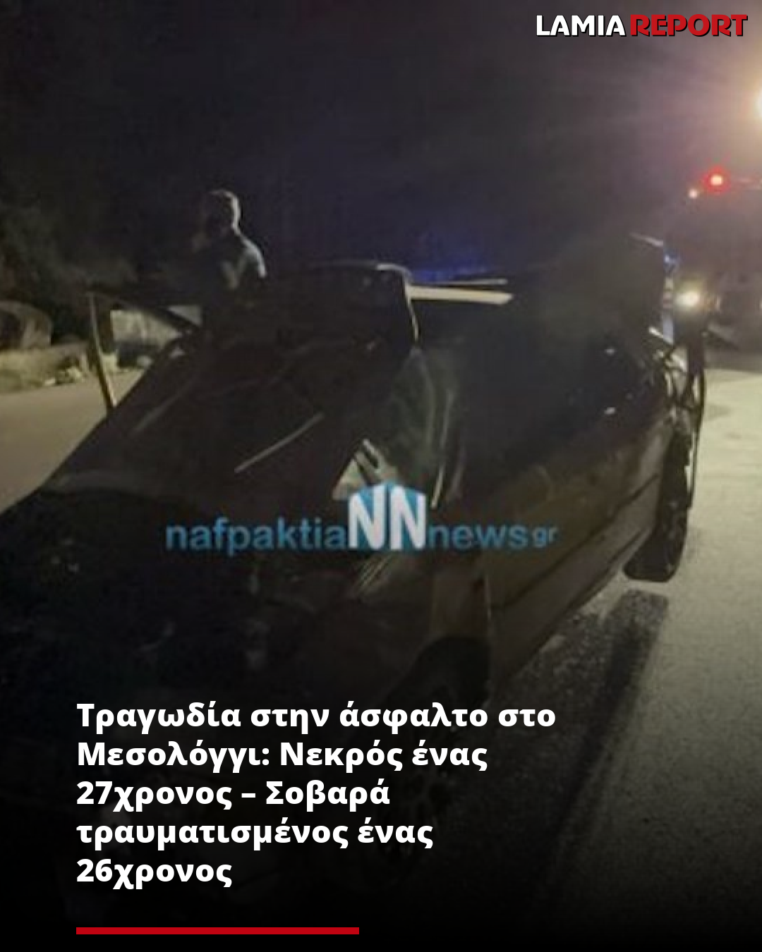 Το αποτέλεσμα του τροχαίου δυστυχήματος στο Μεσολόγγι, ήταν να χάσει τη ζωή του ένας 27χρονος σύμφωνα με το nafpaktianews ενώ ένας 26χρονος έχει τραυματιστεί σοβαρά.