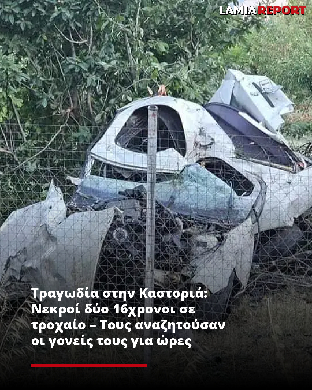 Σε άμορφη μάζα σιδερικών μετατράπηκε το λευκό αυτοκίνητο στο οποίο επέβαιναν δύο 16χρονοι στην Καστοριά. Οι 2 ανήλικοι, ένα κορίτσι και ένα αγόρι, άφησαν την τελευταία τους πνοή στην άσφαλτο, πριν προλάβει να φτάσει στο σημείο η τροχαία και ασθενοφόρο του ΕΚΑΒ, που έσπευσαν μετά από κλήση για το σοκαριστικό τροχαίο δυστύχημα.