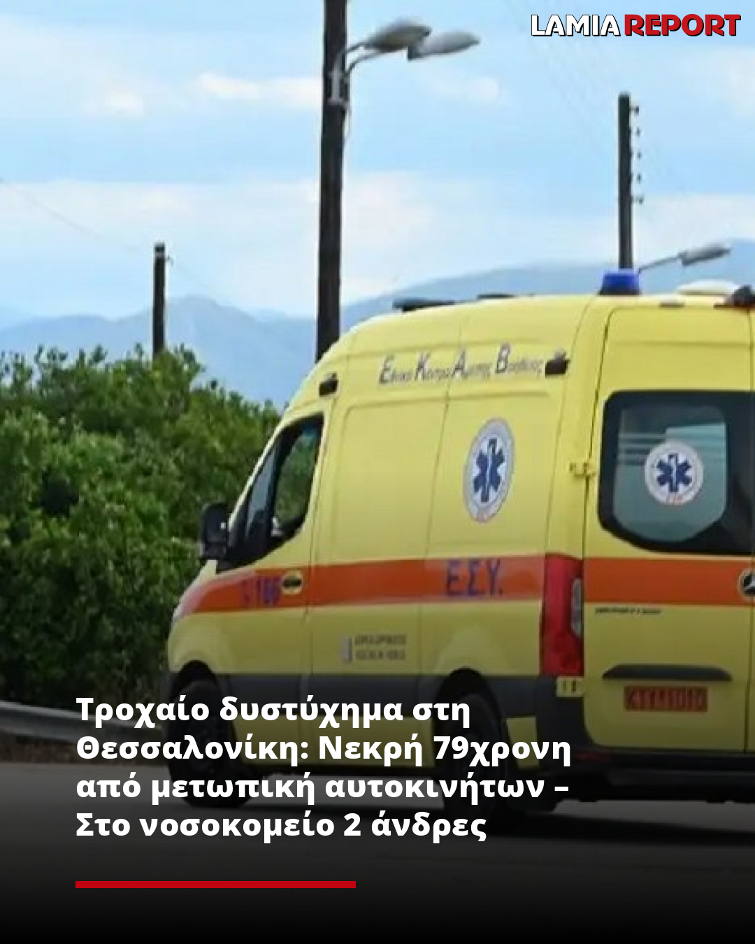 Το τροχαίο δυστύχημα, σύμφωνα με το newsit.gr, έγινε το πρωί της Παρασκευής (12.09.2025) στην επαρχιακή οδό της Θεσσαλονίκη Ζαγκλιβερίου – Καλαμωτού. Το αυτοκίνητο που οδηγούσε 83χρονος συγκρούστηκε μετωπικά με αυτοκίνητο που οδηγούσε 26χρονος, με αποτέλεσμα να τραυματιστούν και οι 2 οδηγοί.