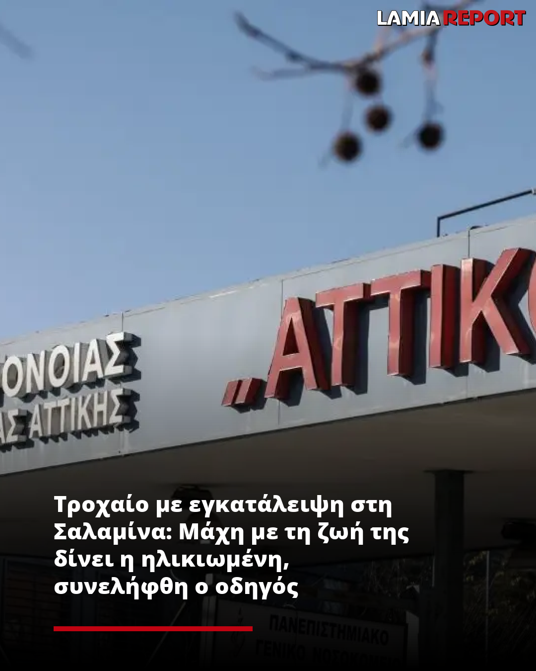 Το σοκαριστικό τροχαίο έγινε γύρω στις 22:00 το Σάββατο (23.08.2025) στη λεωφόρο Φανερωμένης στη Σαλαμίνα, όταν οδηγός παρέσυρε με την μηχανή του το θύμα με αποτέλεσμα να τραυματιστεί πολύ σοβαρά. Αφού η γυναίκα έπεσε αιμόφυρτη, ο οδηγός τράπηκε σε φυγή για να γλιτώσει την σύλληψη.