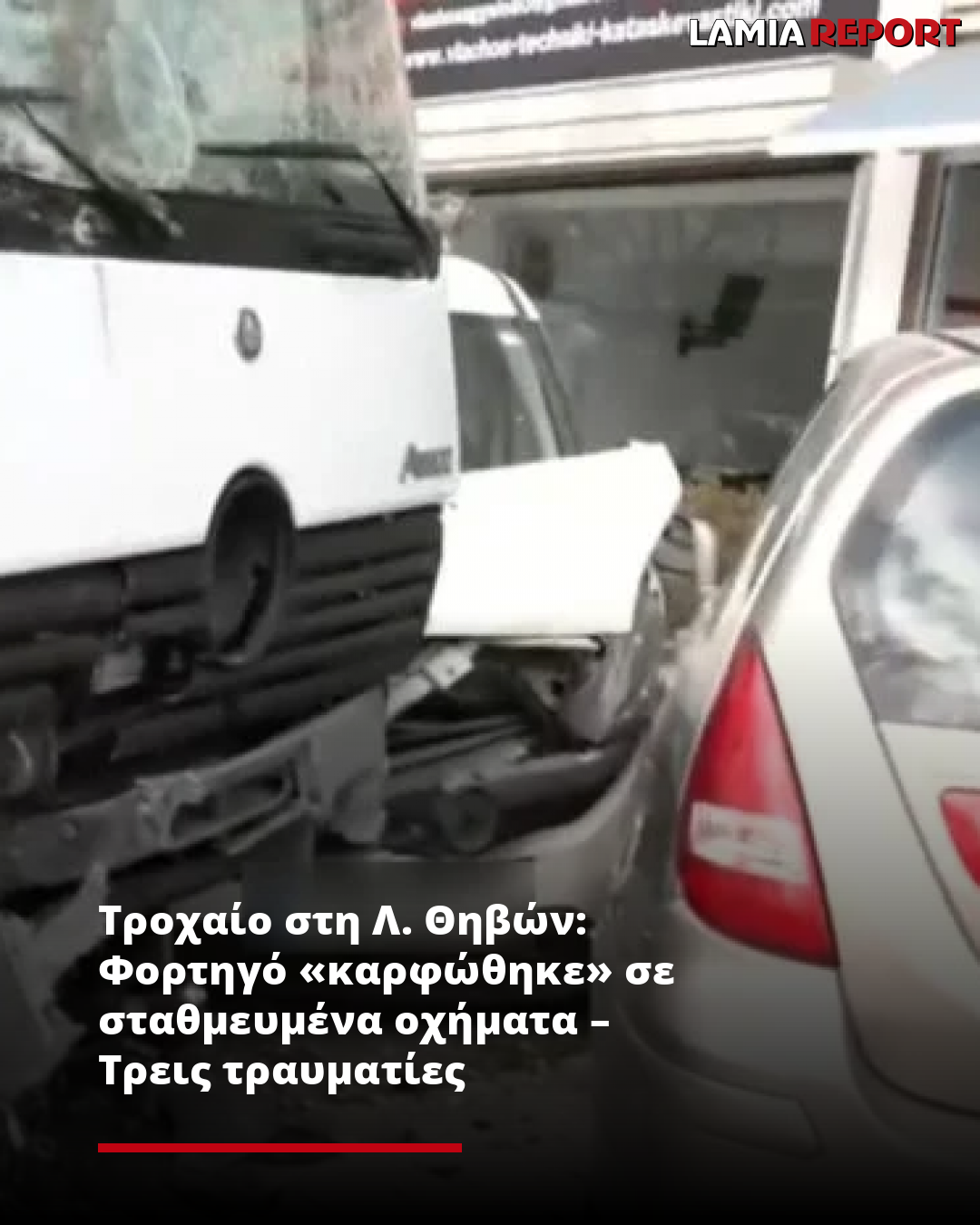 Τροχαίο στη Λ. Θηβών: Φορτηγό «καρφώθηκε» σε σταθμευμένα οχήματα – Τρεις τραυματίες