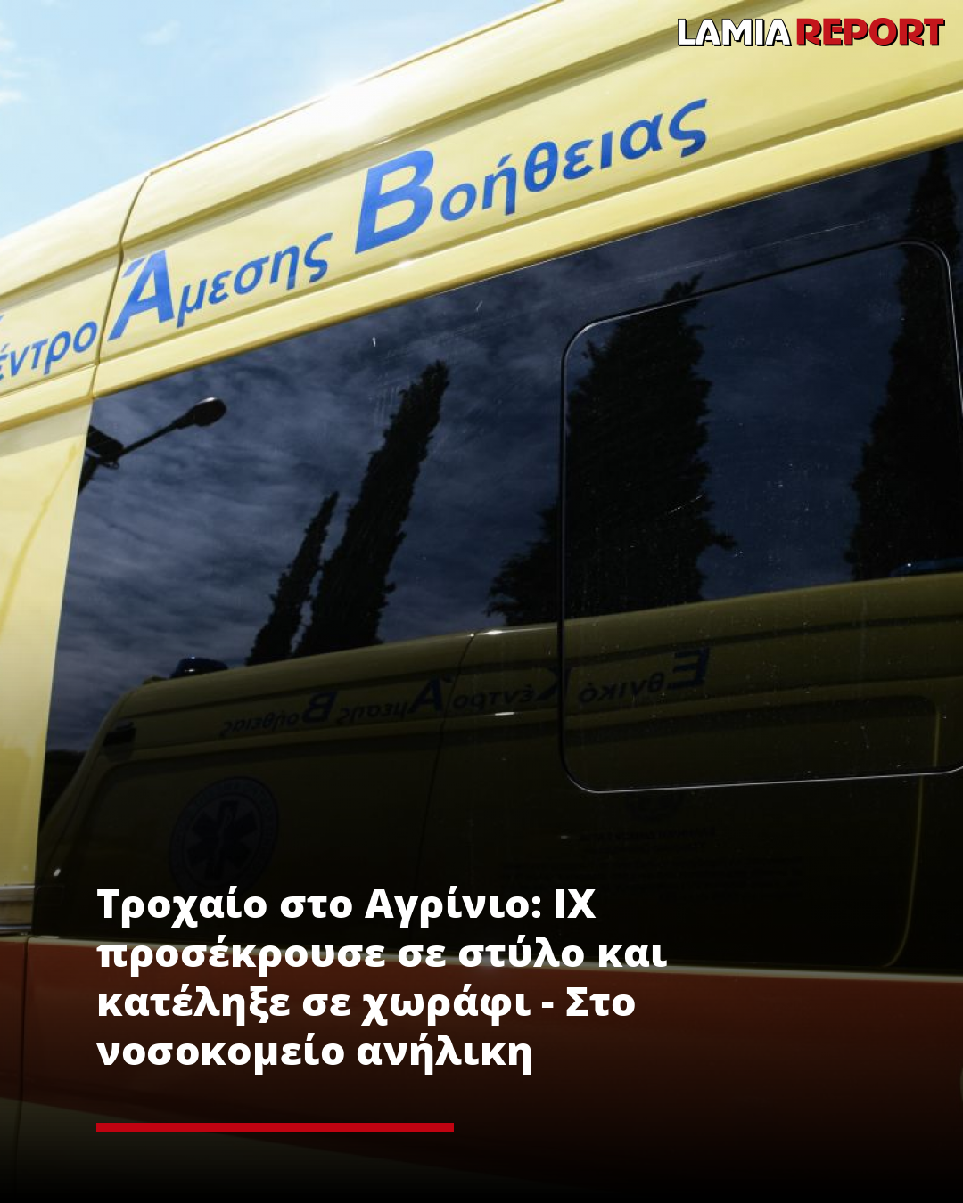 Τροχαίο στο Αγρίνιο: ΙΧ προσέκρουσε σε στύλο και κατέληξε σε χωράφι - Στο νοσοκομείο ανήλικη