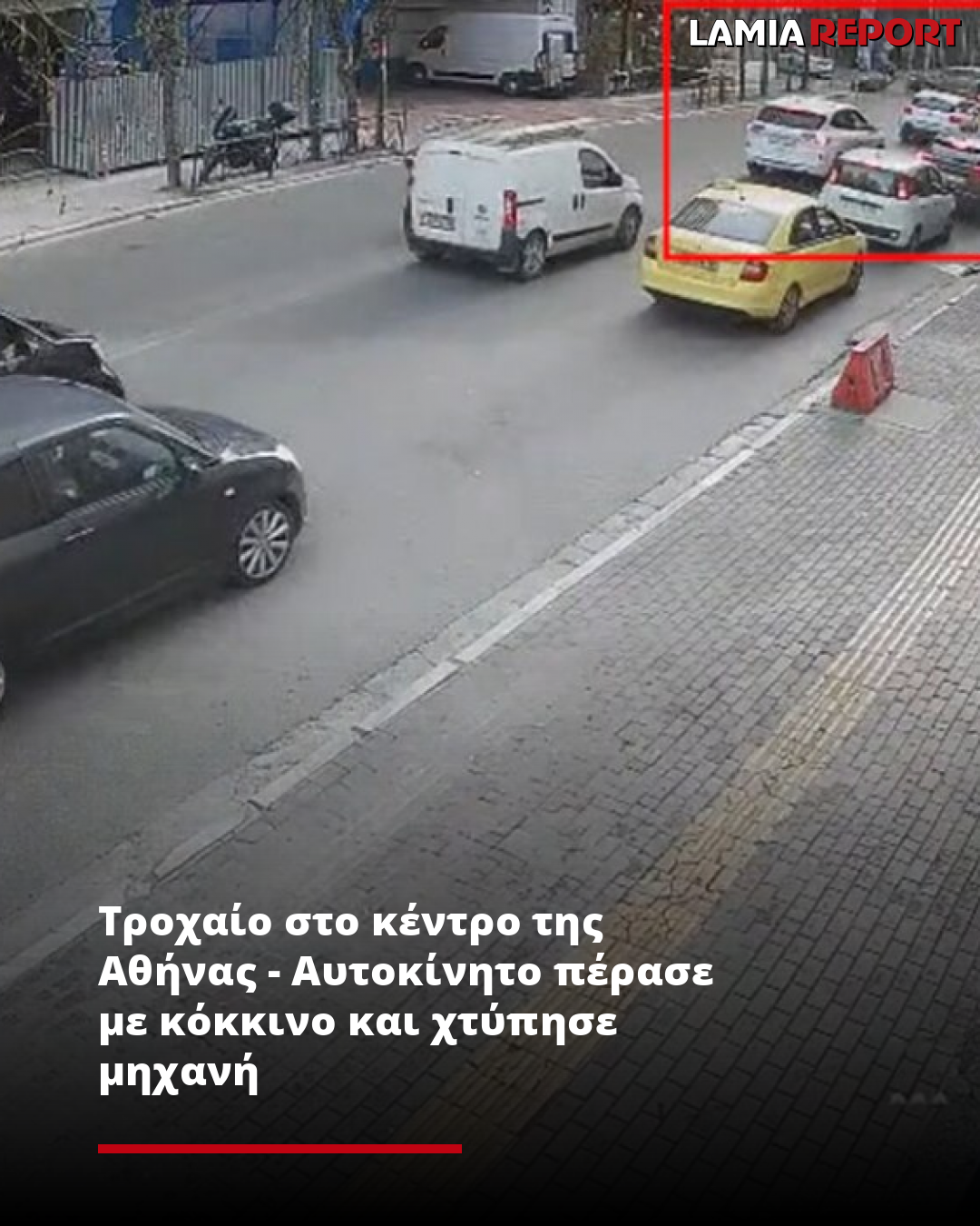 Τροχαίο στο κέντρο της Αθήνας - Αυτοκίνητο πέρασε με κόκκινο και χτύπησε μηχανή