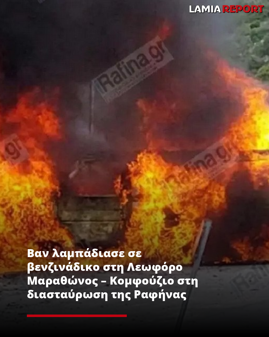 Βαν λαμπάδιασε σε βενζινάδικο στη Λεωφόρο Μαραθώνος – Κομφούζιο στη διασταύρωση της Ραφήνας