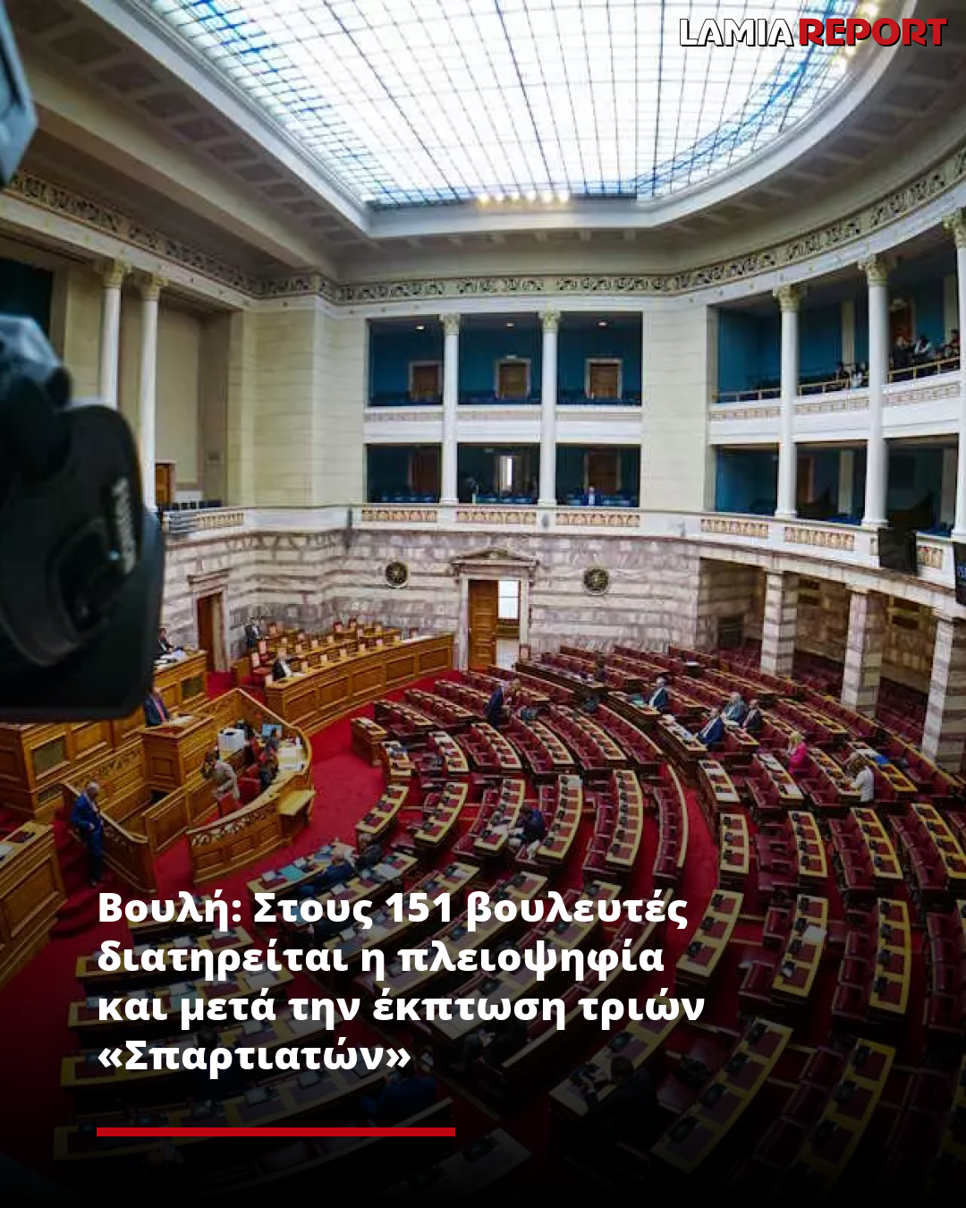 Βουλή: Στους 151 βουλευτές διατηρείται η πλειοψηφία και μετά την έκπτωση τριών «Σπαρτιατών»