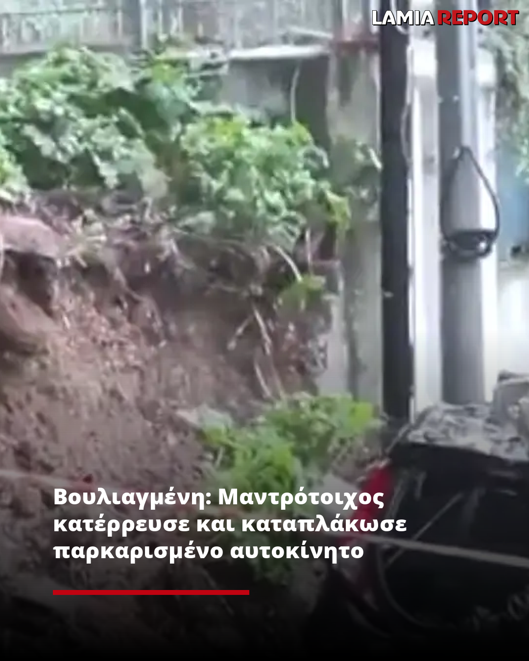 Συγκεκριμένα ο μαντρότοιχος οικοπέδου στην Βουλιαγμένη υποχώρησε εξαιτίας της τεράστιας έντασης νερού από την κακοκαιρία αυτό αυτό παρέσυρε το χώμα τα δέντρα και τα μπετά που τα στήριζαν καταστρέφοντας ολοσχερώς ένα σταματημένο αυτοκίνητο.