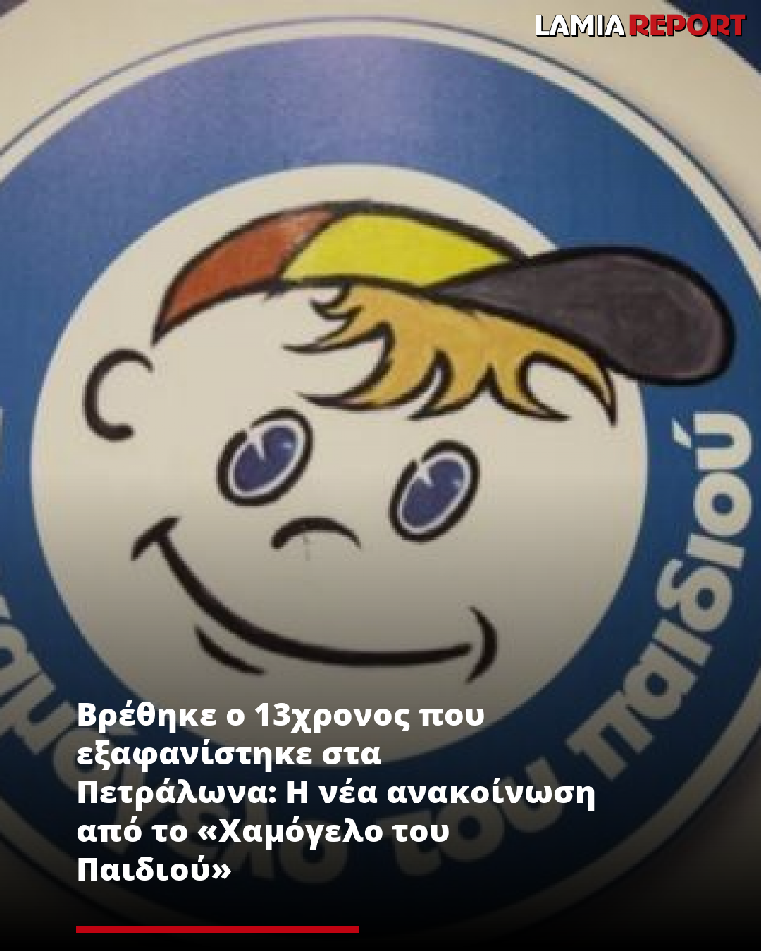 Αίσιο τέλος είχε η περιπέτεια του Μοράντ Σαμαράι, 13 ετών, ο οποίος είχε εξαφανιστεί από χώρο φιλοξενίας ασυνόδευτων ανηλίκων στα Πετράλωνα. Τα καλά νέα έκανε γνωστά το «Χαμόγελο του Παιδιού» με ανακοίνωσή του την Παρασκευή (12.12.2025).