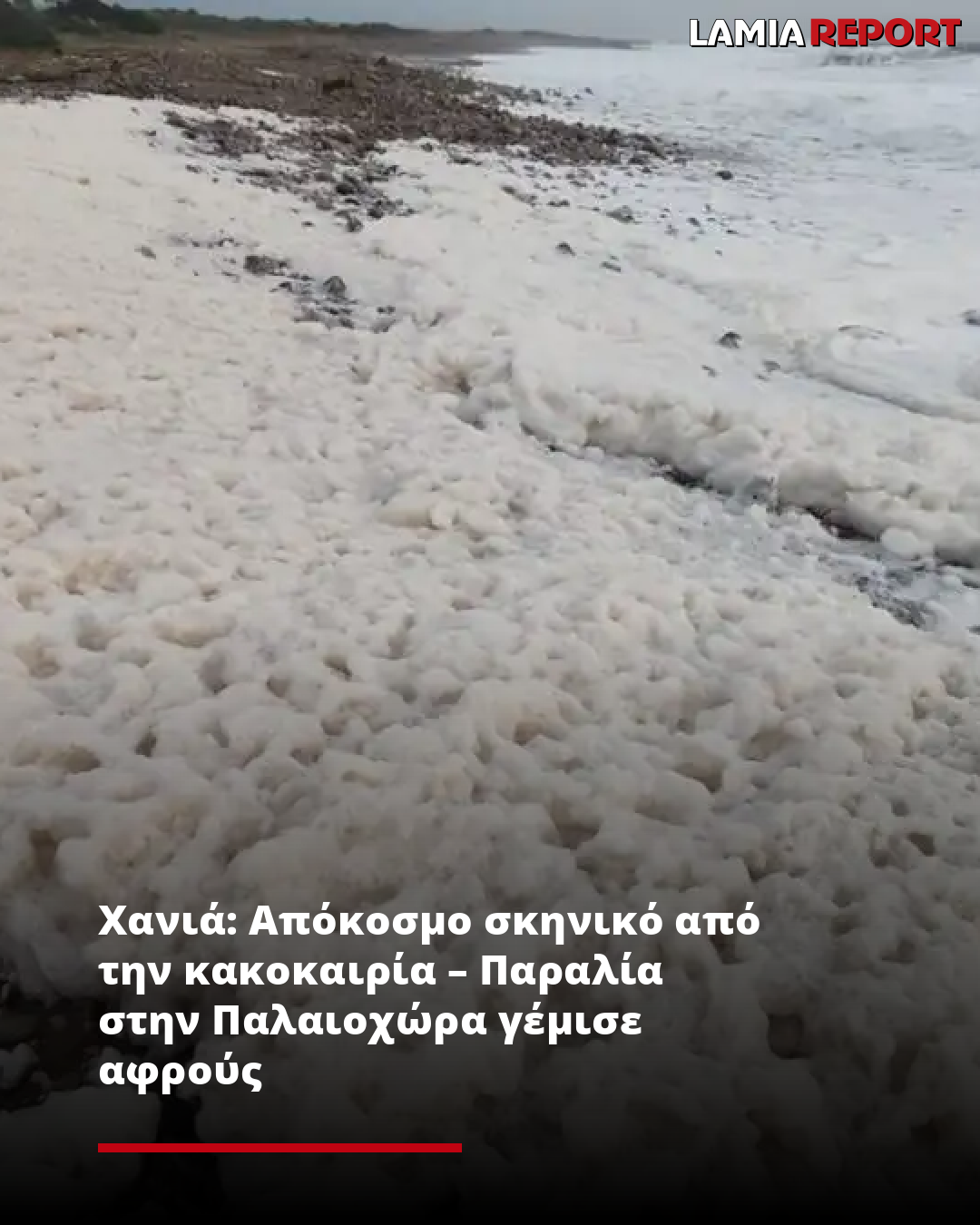 Ένα απόκοσμο σκηνικό δημιούργησε η κακοκαιρία στην Παλαιοχώρα Χανίων με την παραλία Κριός να γεμίζει αφρούς.