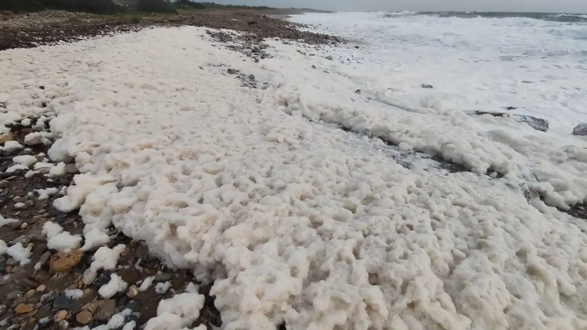 Το φαινόμενο αυτό είναι απολύτως φυσικό και οφείλεται στην έντονη αναταραχή της θάλασσας. Τα μεγάλα κύματα μεταφέρουν στην ακτή οργανική ύλη, όπως φυτοπλαγκτόν, φύκια και αποσυντιθέμενα υλικά, τα οποία, σε συνδυασμό με τον αέρα, σχηματίζουν αφρό που ξεβράζεται στην παραλία.