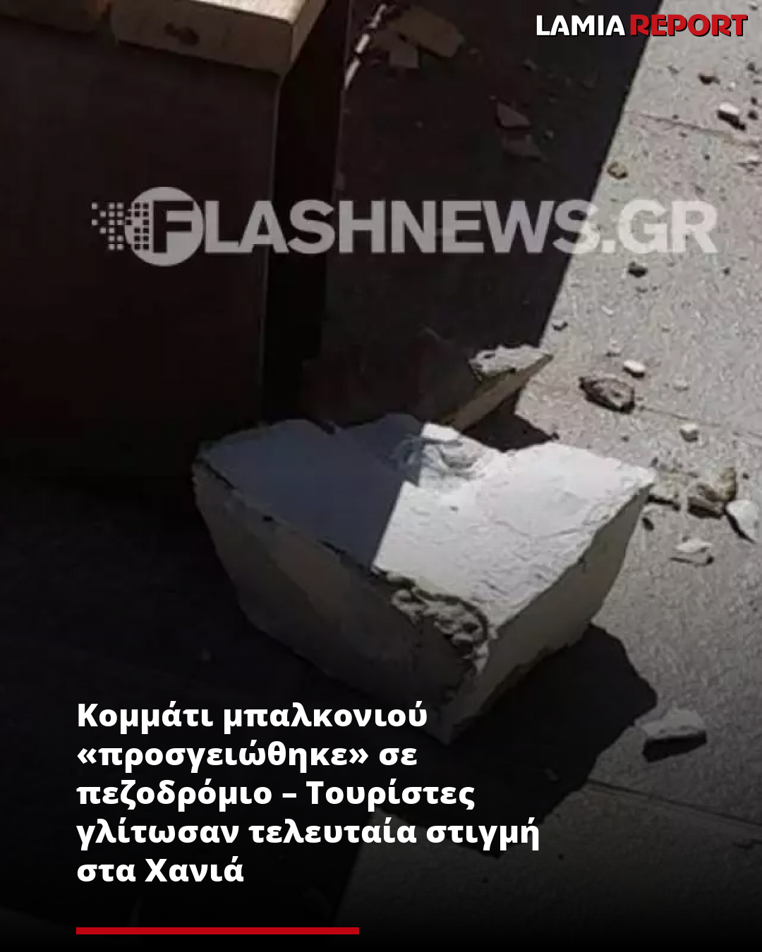 Από τύχη δε θρηνήσαμε θύματα το μεσημέρι της Πέμπτης (03.10.2024) στα Χανιά, όταν μέρος από μπαλκόνι αποκολλήθηκε.