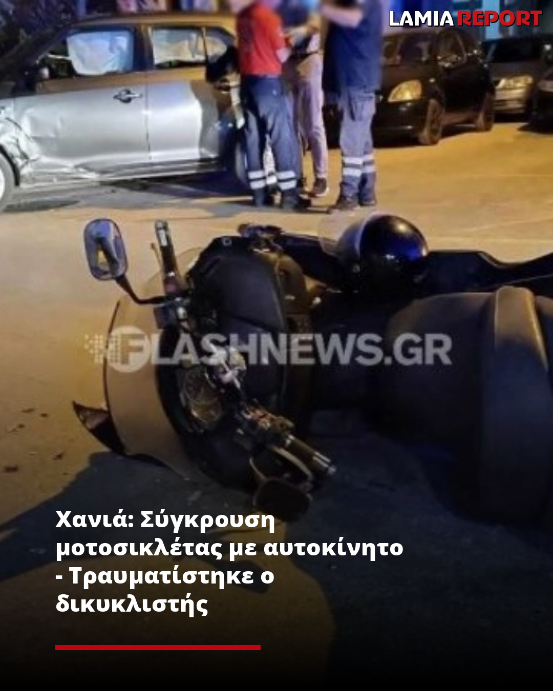 Σφοδρή σύγκρουση μοτοσικλέτας με αυτοκίνητο σημειώθηκε το βράδυ του Σαββάτου 19 Οκτωβρίου σε διασταύρωση κεντρικού δρόμου της πόλης των Χανίων.