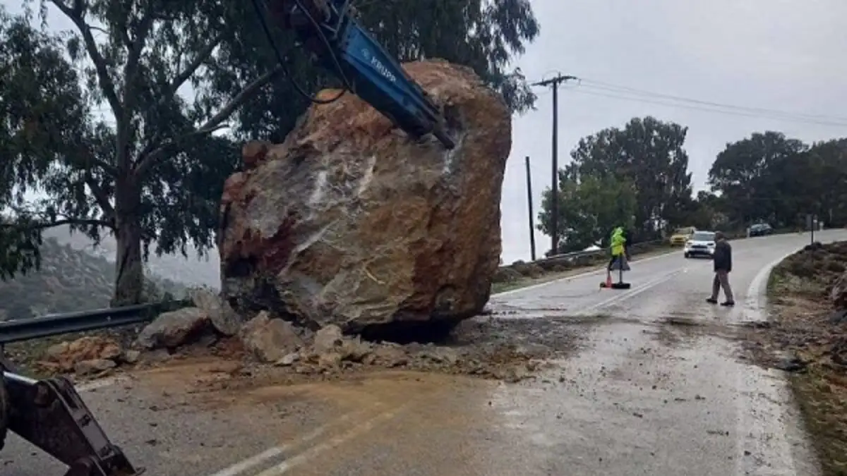 Σύμφωνα με το newsit.gr, αποκλεισμένη παραμένει και σήμερα (02.02.2026) η εθνική Χίου Καρδαμύλων, από την επικίνδυνη κατολίσθηση που σημειώθηκε την Κυριακή όταν τεράστιος βράχος προσγειώθηκε στον δρόμο, μία ανάσα μακριά από τα αυτοκίνητα που περνούσαν από το σημείο.