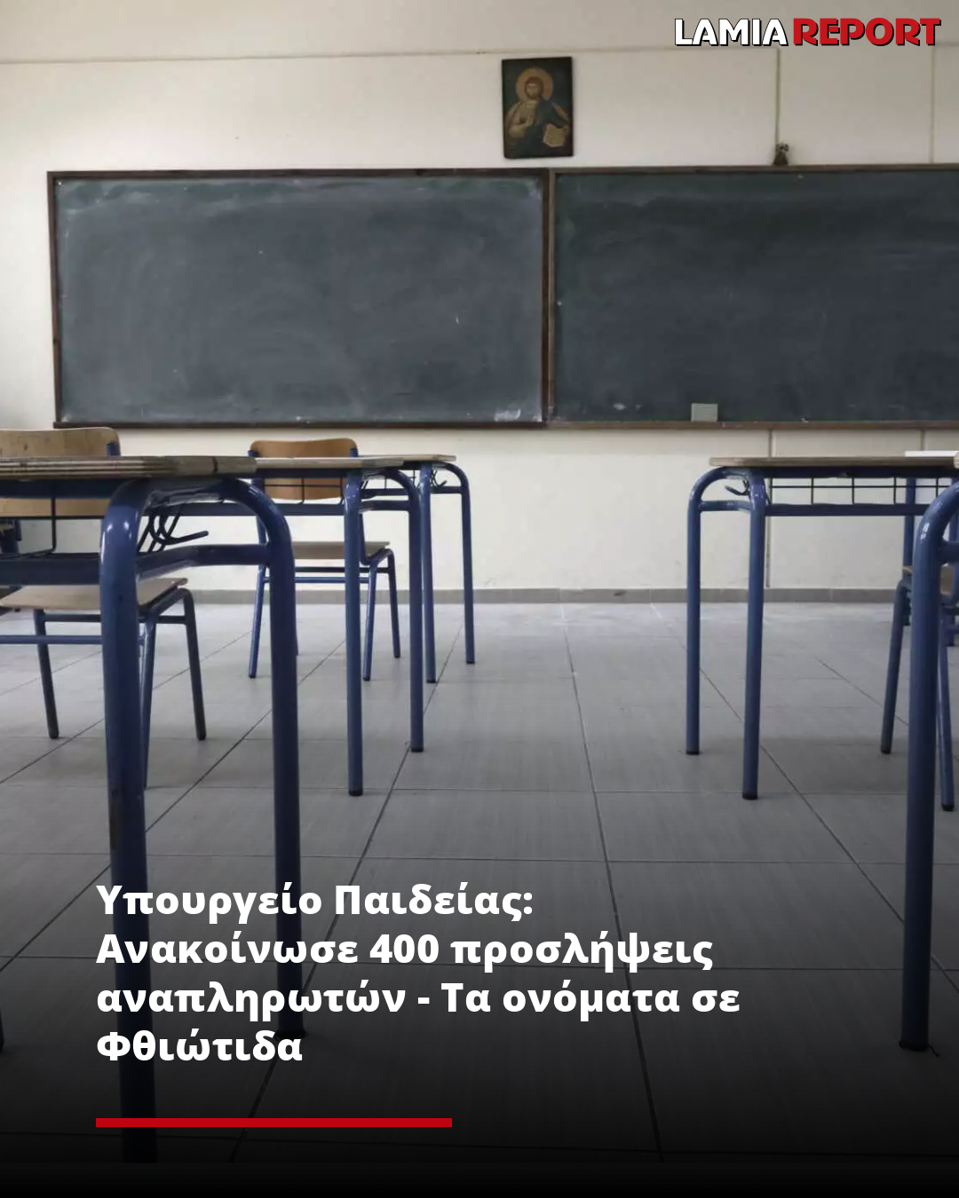 Υπουργείο Παιδείας: Ανακοίνωσε 400 προσλήψεις αναπληρωτών - Τα ονόματα σε Φθιώτιδα & Στερεά