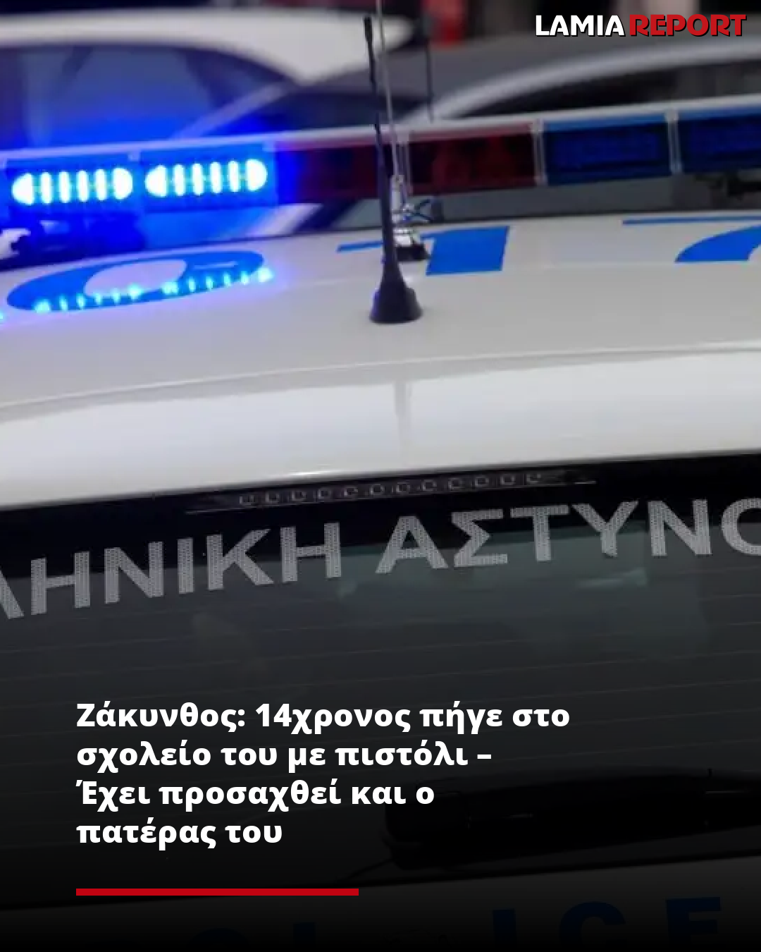 Όπως μετέδωσε η ΕΡΤ το απόγευμα της Τρίτης (20.1.26), στην Αστυνομική Διεύθυνση Ζακύνθου έχει προσαχθεί ένας 14χρονος μαθητής Γυμνασίου του νησιού, ο οποίος πήγε το πρωί στο σχολείο του, έχοντας μαζί του ένα πιστόλι.