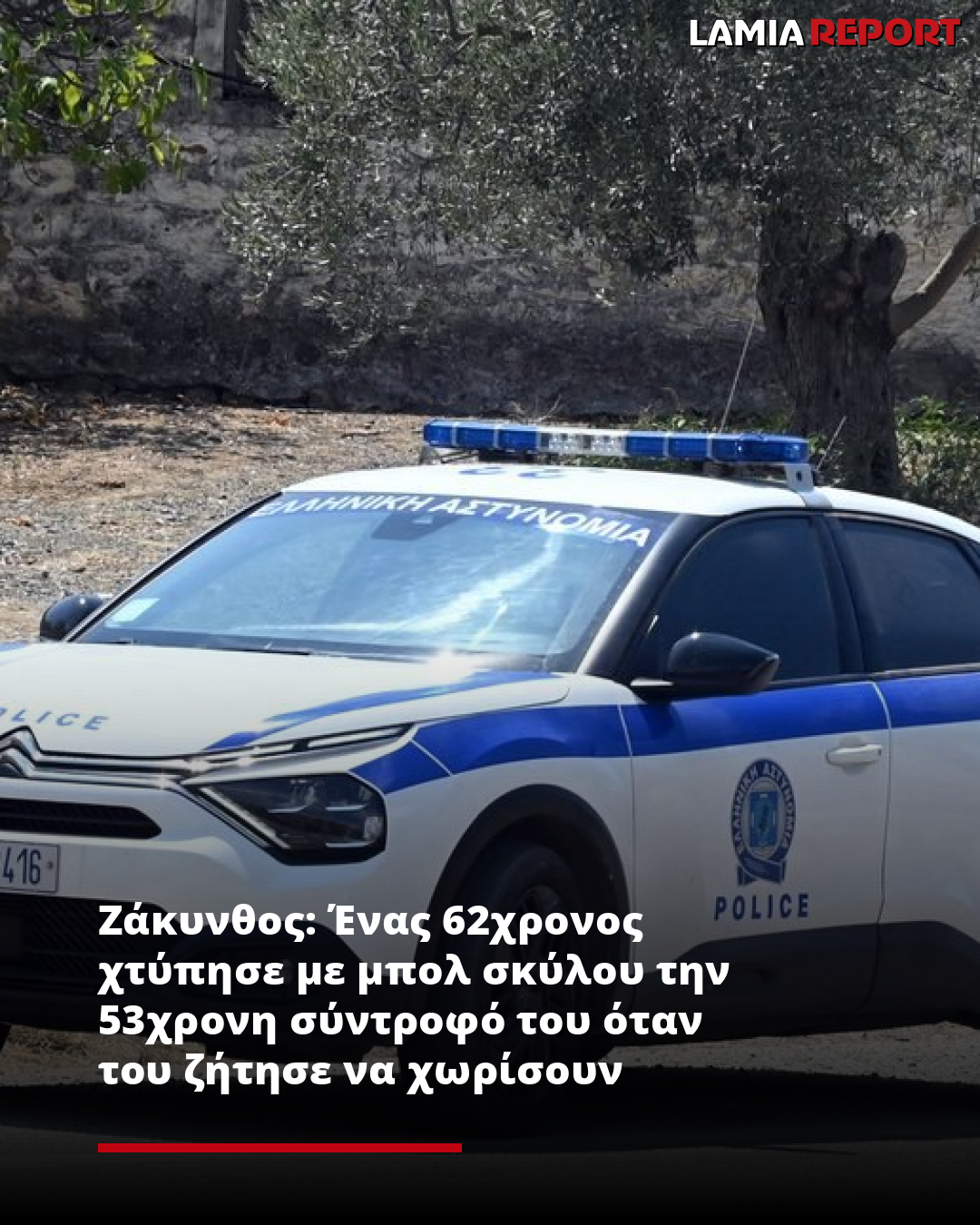 Όπως καταγγέλλει η 53χρονη – θύμα ενδοοικογενειακής βίας στη Ζάκυνθο – ο 62χρονος τής επιτέθηκε και τη χτύπησε με το βαρύ αυτό αντικείμενο, επειδή του ζήτησε να χωρίσουν.