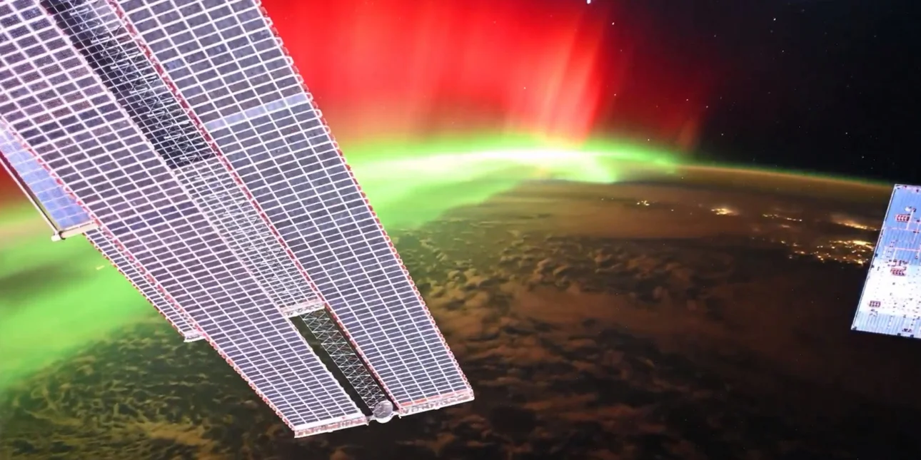 The northern lights were unusually intense, with rare red hues alongside the usual green. A video shared from the ISS by cosmonaut Sergey Kud-Sverchkov showed the display during the strongest magnetic storm in two decades, visible even over the Middle East, he said. pic.twitter.com/SBZzQmgODD