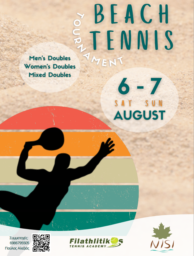 Το NISI φιλοξενεί και φέτος ένα από τα πιο συναρπαστικά τουρνουά beach tennis της Φθιώτιδαςτο Σαββατοκύριακο 6 και 7 Αυγούστου. Έλα να γνωρίσεις και να παίξεις ένα από τα πιο διασκεδαστικά και εντυπωσιακά αθλήματα της άμμου.