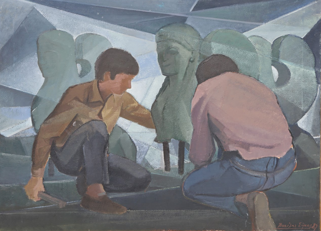Η ζωγραφική του Βασίλη Σίμου (1934-2014) είναι ένα ιδιαίτερο αμάλγαμα που συνδυάζει ρεαλισμό, εξπρεσιονισμό και αφαίρεση. Το έργο του είναι βαθιά ανθρωποκεντρικό και η θεματολογία εντυπωσιακά αμετάβλητη: βασικός της άξονας είναι η αγροτική ζωή και το ελληνικό τοπίο. Αν θέλαμε να αναζητήσουμε την καταγωγή της εικονογραφίας του, θα έπρεπε να ανατρέξουμε στους Έλληνες υπαιθριστές, οι οποίοι θα επιχειρήσουν να αποτυπώσουν την ιδιαιτερότητα του ελληνικού φωτός. Επιπλέον, θα έπρεπε να λάβουμε υπόψη μας το προαφαιρετικό έργο του συντοπίτη του Αλέκου Κοντόπουλου, με τον οποίο μοιράζεται παρόμοια χρωματική γκάμα. Δεν θα μπορούσαμε να αγνοήσουμε τα «Καπνοχώραφα» του Καρδιτσιώτη Δημήτρη Γιολδάση, καθώς και πολλούς ακόμη Έλληνες ζωγράφους που καταπιάστηκαν με τη φύση και το ελληνικό ύπαιθρο: ενδεικτικά αναφέρουμε την «Επιστροφή στο χωριό» του Θεόφραστου Τριανταφυλλίδη και το «Πότισμα των ζώων» του Βάσου Γερμενή. Κατά κάποιον τρόπο ο Σίμος παίρνει τη σκυτάλη από αυτούς του ζωγράφους, συνεχίζοντας το όραμά τους.