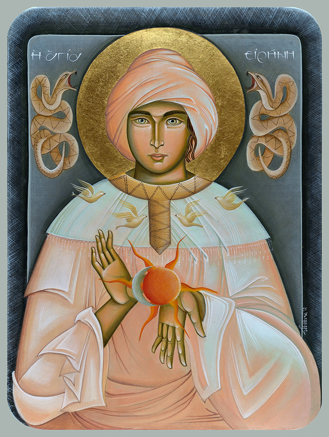 Η Δήμητρα Νατσκούλη "πατώντας" στην πλούσια Βυζαντινή παράδοση, ζωγραφίζει πορτρέτα και συνθέσεις, που εμπνέονται από ψυχικές καταστάσεις.