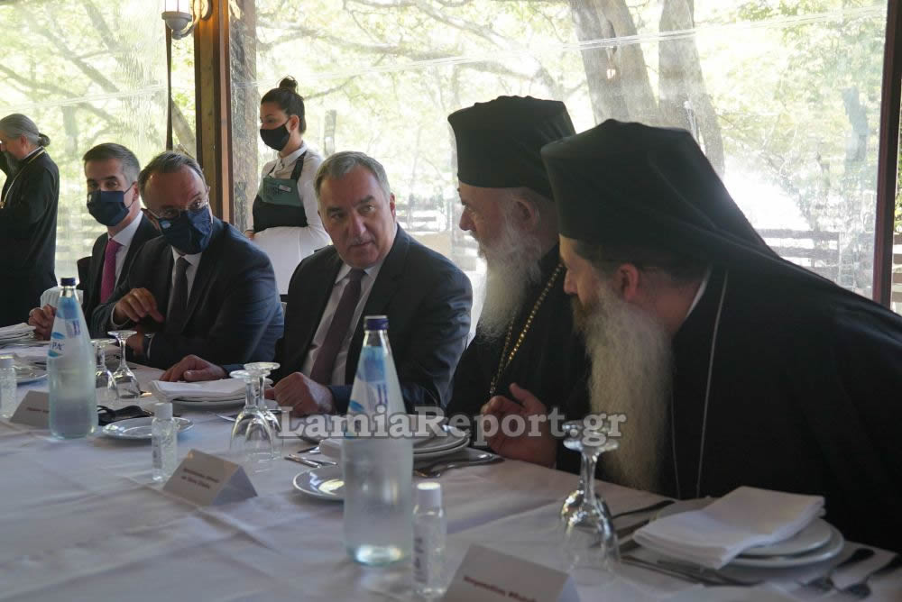 Η τελετή πραγματοποιήθηκε στο εξωτερικό μέρος του ξενοδοχείου - εστιατορίου «Τεμπέλης», δίπλα στον ιστορικό Γοργοπόταμο με την παρουσία του Μητροπολίτη Φθιώτιδας Συμεών, του Μητροπολίτη Καρπενησίου Γεώργιουκαι πλήθος επισήμων, όπως ο υπουργός Οικονομικών και βουλευτής Φθιώτιδας, Χρήστος Σταϊκούρας, ο Περιφερειάρχης Στερεάς Ελλάδας Φάνης Σπανός, οι βουλευτές του νομού, Γιάννης Οικονόμου, Γιώργος Κοτρωνιάς, Θέμης Χειμάρας και Γιάννης Σαρακιώτης, ο Δήμαρχος Αθηναίων Κώστας Μπακογιάννης, ο Πρόεδρος της ΠΕΔ και Δήμαρχος Καρπενησίου Νίκος Σουλιώτης, οι Δήμαρχοι, Στυλίδας, Βιργινία Στεργίου, Δομοκού, Μπάμπης Λιόλιος, Μακρακώμης, Γιώργος Χαντζής και Αμφίκλειας - Ελάτειας Αθανασία Στιβακτή, ο πρώην υφυπουργός Υγείας Αθανάσιος Γιαννόπουλος, δημοτικοί και περιφερειακοί σύμβουλοι, εκπρόσωποι του Στρατού των Σωμάτων Ασφαλείας και πολλών Φορέων.
