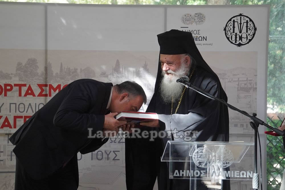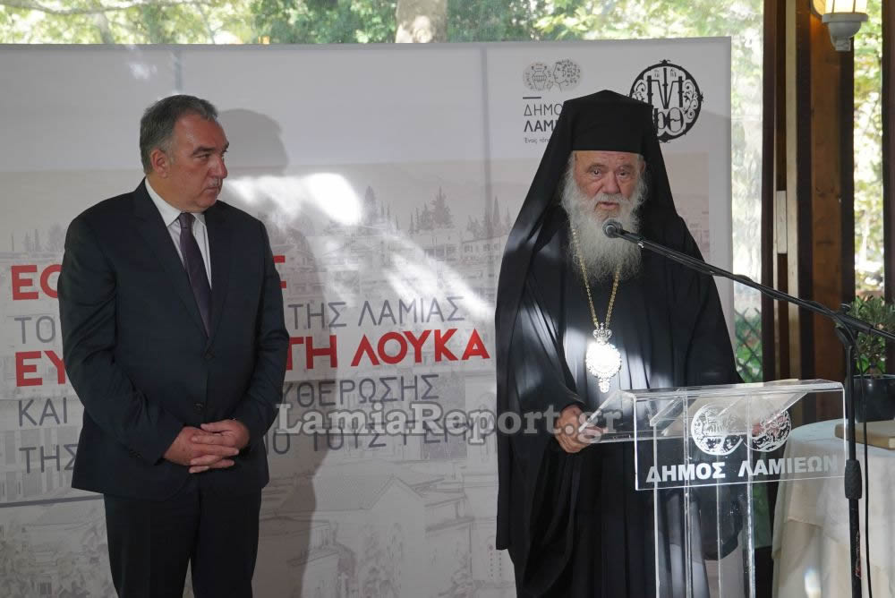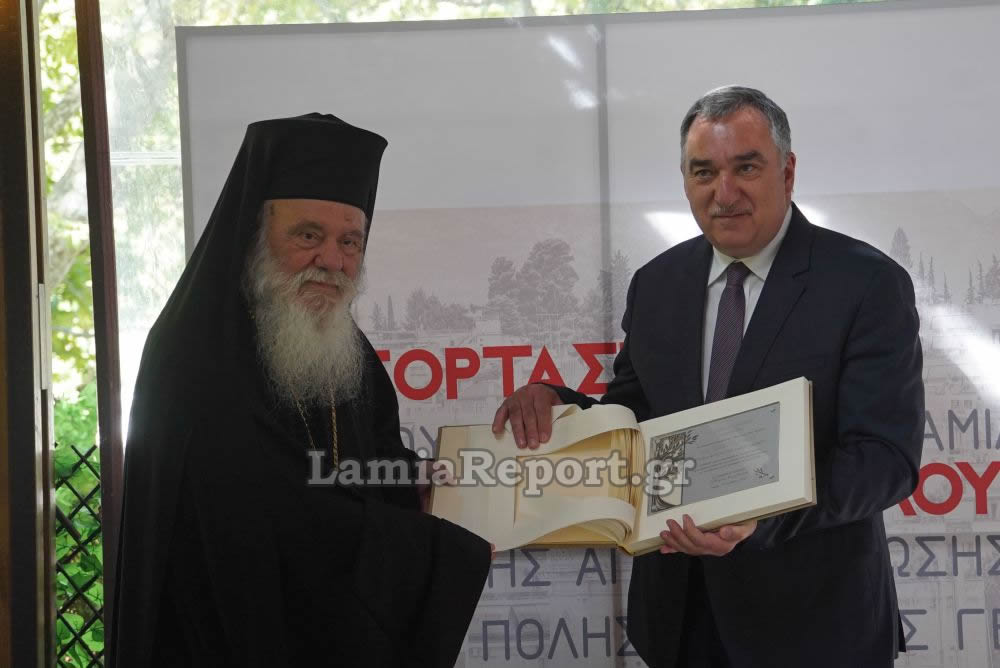 Στην προσφώνησή του ο Δήμαρχος Λαμιέων Θύμιος Καραΐσκος, χαρακτήρισε τον Αρχιεπίσκοπο Ιερώνυμο, ως Αρχιεπίσκοπο των Έργων, κάνοντας αναφορές στο πολυσχιδές έργο του, υπογραμμίζοντας την αγαστή συνεργασία του με την Ιερά Μητρόπολη Φθιώτιδας και τις δράσεις που έχουν αναπτύξει από κοινού για τη στήριξη ευάλωτων πληθυσμών.