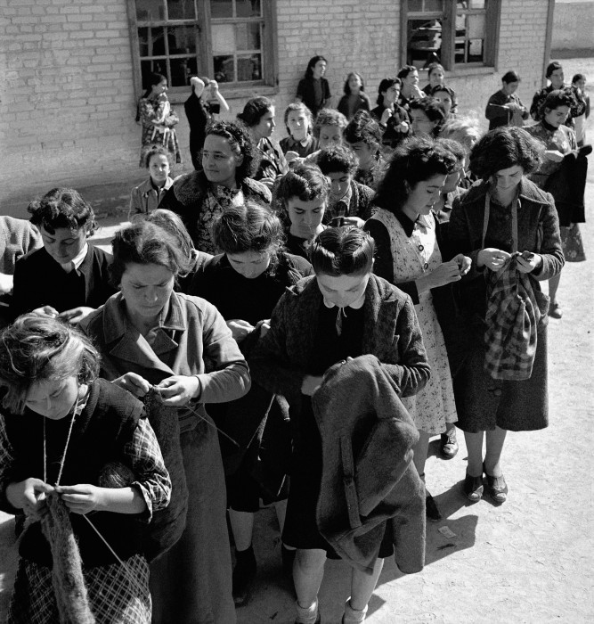 (Βούλα Παπαϊωάννου, Ομαδικό πλέξιμο. Αθήνα, 1940 © Μουσείο Μπενάκη / Φωτογραφικά Αρχεία)