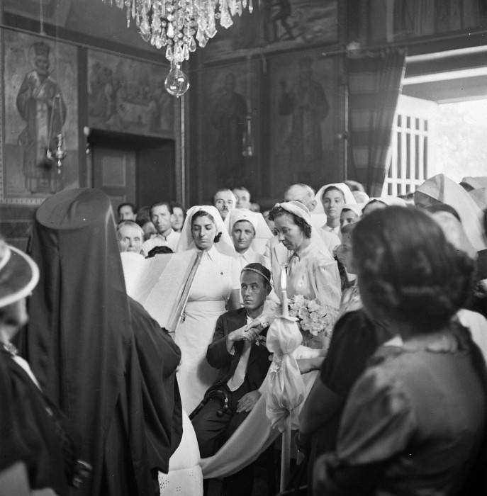 (Βούλα Παπαϊωάννου, Γάμος τραυματία του Αλβανικού Μετώπου με νοσοκόμα, Αθήνα, 1940 © Μουσείο Μπενάκη / Φωτογραφικά Αρχεία)