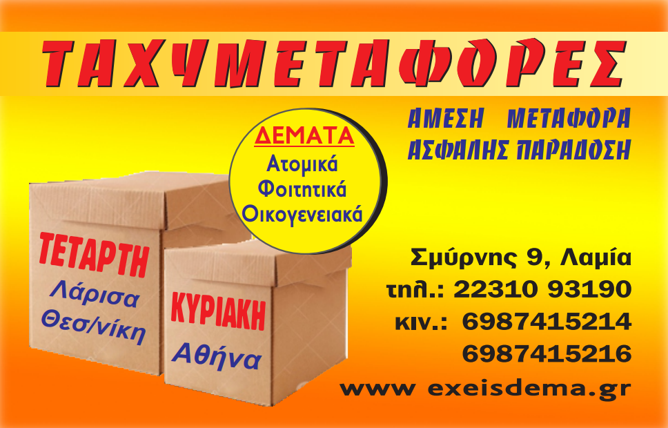 Η εταιρεία ταχυμεταφορών «Έχεις δέμα», Σμύρνης 9 στη Λαμία, φροντίζει για όλα!