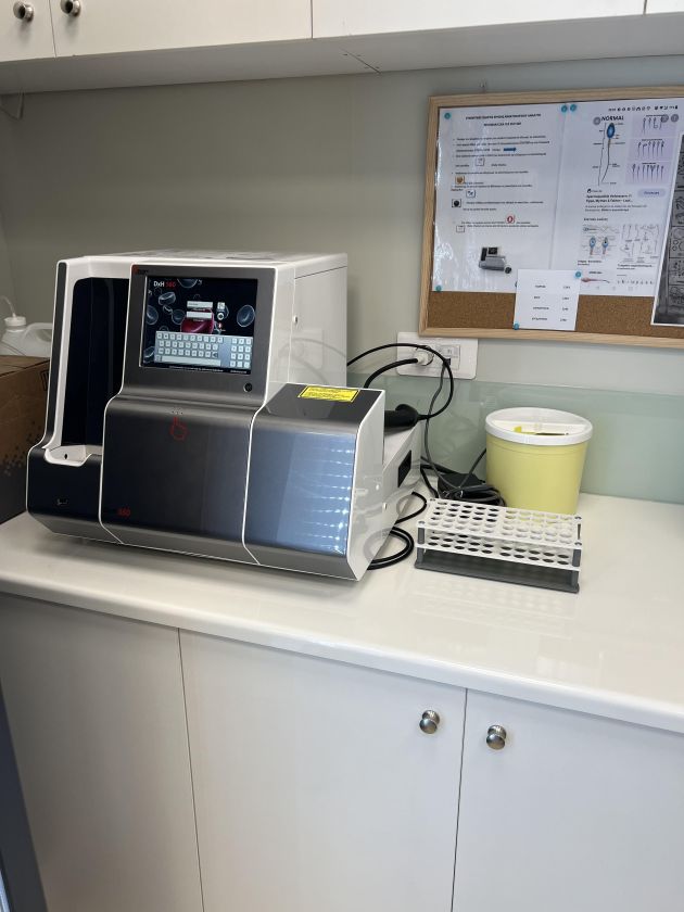 Αυτό πραγματοποιείται εξοπλίζοντας το ιατρείο μας με σύγχρονα μηχανήματα τελευταίας τεχνολογίας των εταιρειών Abbott, Siemens, Beckman,Biomerieux και στελεχόνοντάς το με έμπειρο και καλά καταρτισμένο προσωπικό.