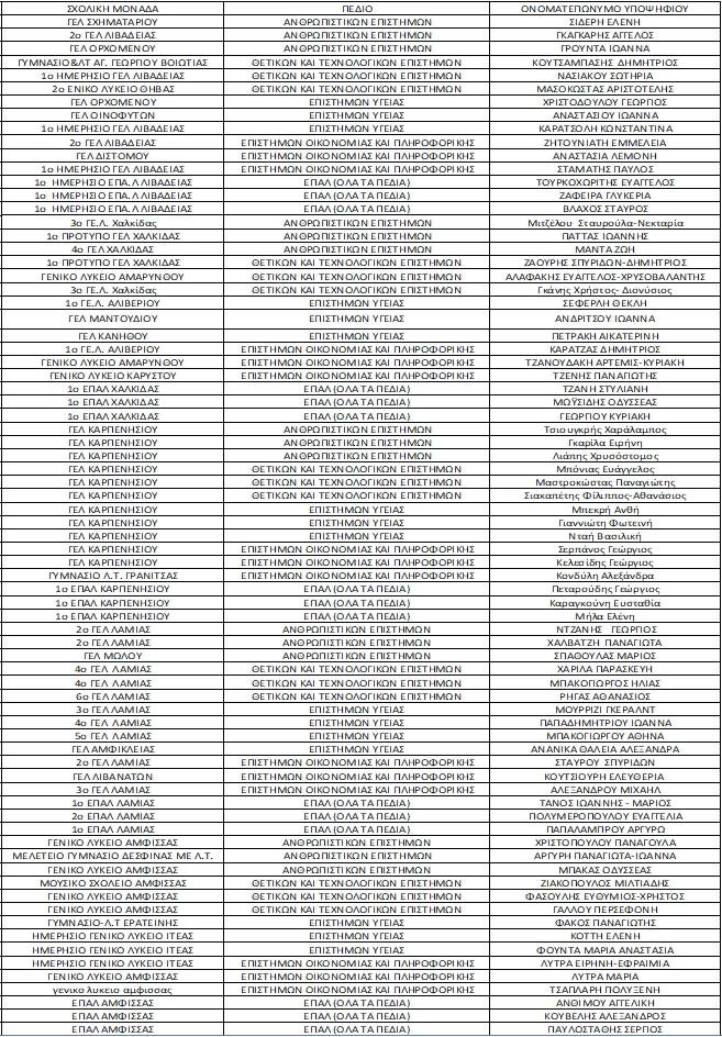 Ειδικότερα, βραβεύτηκαν οι τρεις πρώτοι μαθητές / μαθήτριες ανά επιστημονικό πεδίο και ανά περιφερειακή ενότητα, όπως επίσης και οι τρεις πρώτοι όλων των ΕΠΑ.Λ. ανά περιφερειακή ενότητα.