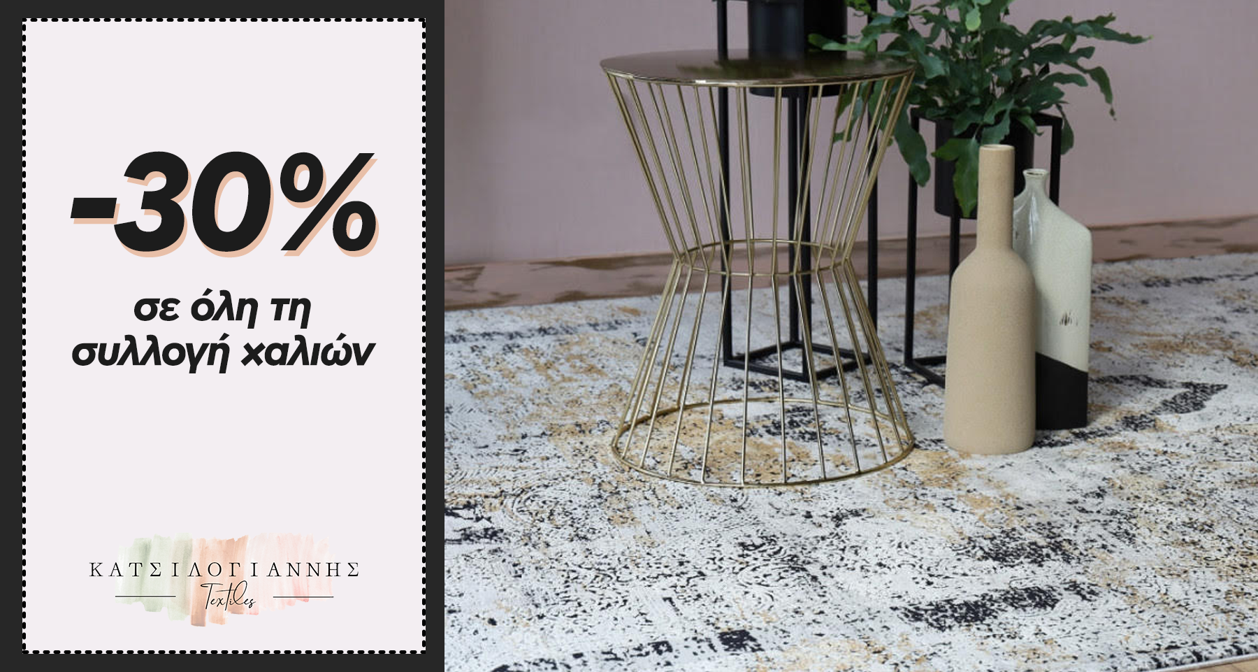 Οι εκπτώσεις όμως δεν τελειώνουν εδώ καθώς στο Calmhome Κατσιλογιάννης θα βρείτε όλα τα χαλιά με 30% έκπτωση και άλλα λευκά είδη με εκπτώση έως και 50%!