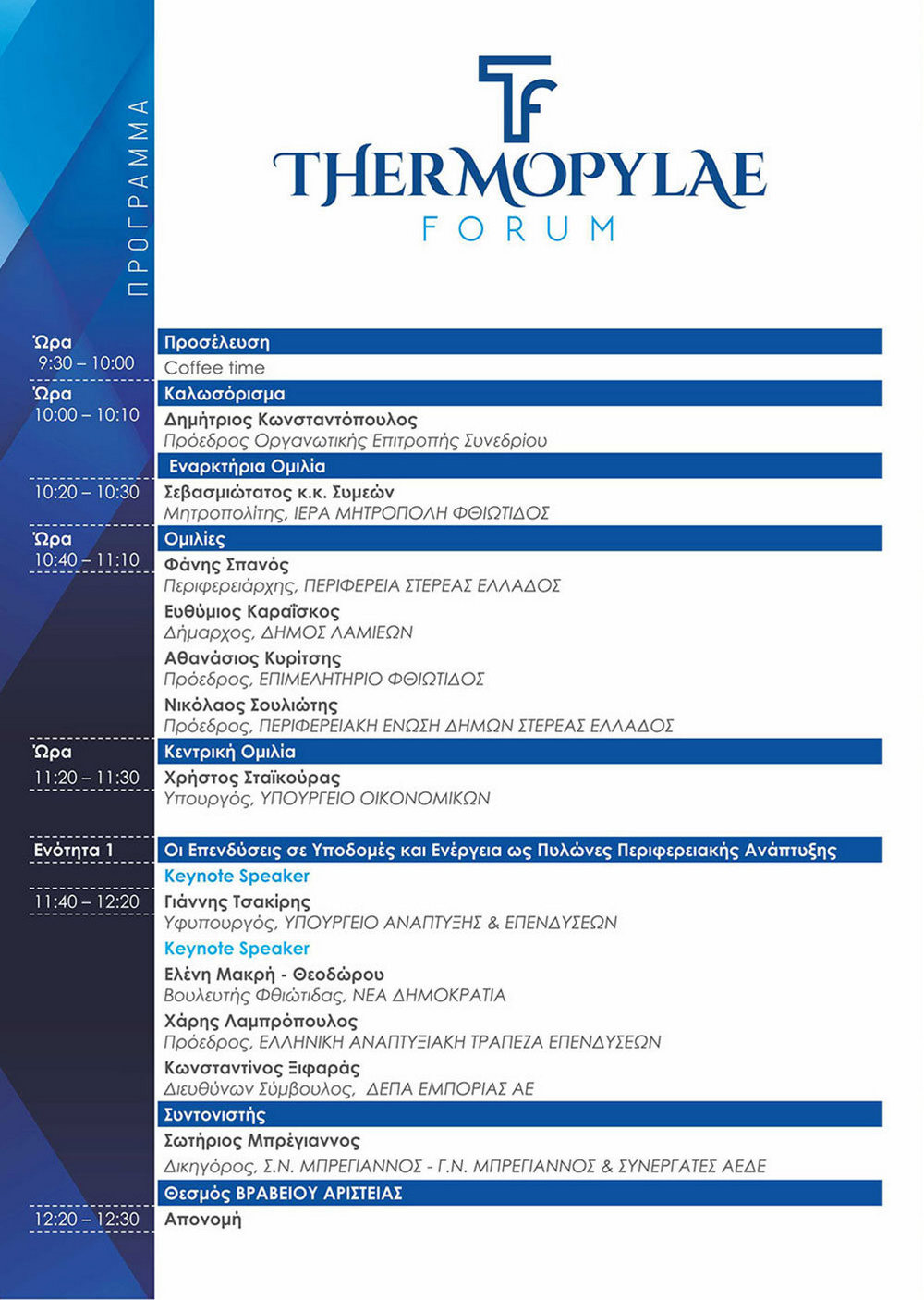 Δείτε παρακάτω το αναλυτικό πρόγραμμα του 1ουThermopylae forum: