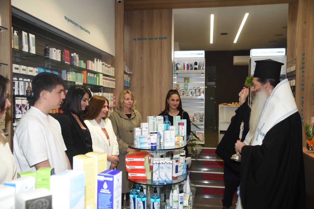 Υπό τη σκέπη και τις ευλογίες του χοροστατούντος Σεβασμιωτάτου Μητροπολίτου Ποιμενάρχου μας κ.κ Συμεών, συλλειτουργούντωνκαι των Θεοφιλεστάτων Επισκόπων Ρωγών κ.κ Φιλόθεου και Κερνίτσης κ.κ Χρύσανθου, τελέστηκαν τα εγκαίνια του σύγχρονου και πλήρως εξοπλισμένου φαρμακείου της Παναγιώτας Σταυρογιάννη, κόρης του γνωστού αυτοδιοικητικού, αρχιτέκτωνος μηχανικού Κωνσταντίνου Σταυρογιάννη, στον πεζόδρομο της οδού Βύρωνος 5 της πόλης μας.