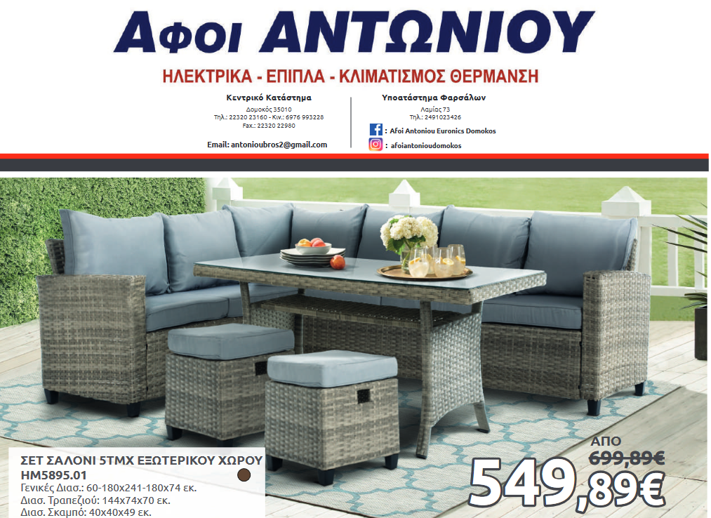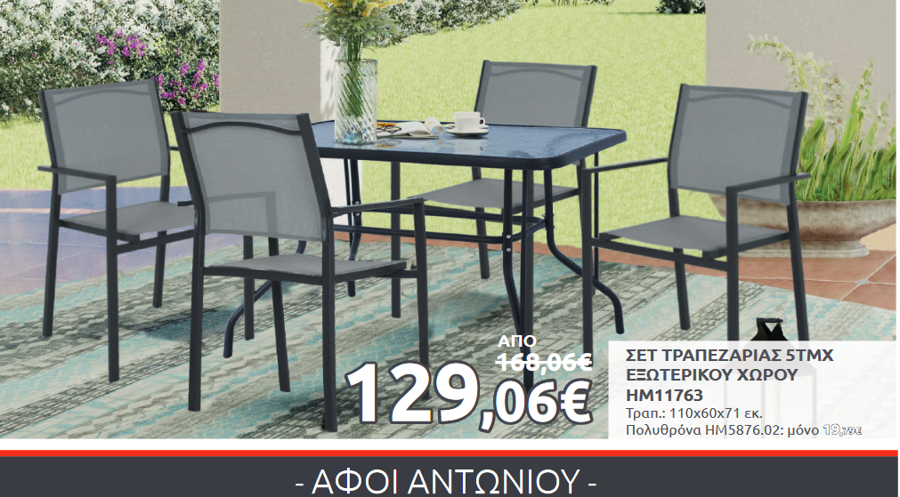 Διαμορφώσετε, λοιπόν, κάθε εξωτερικό σας χώρο με οικονομικά, μοντέρνα, βολικά έπιπλα και απολαύστε τα με τα αγαπημένα σας πρόσωπα!