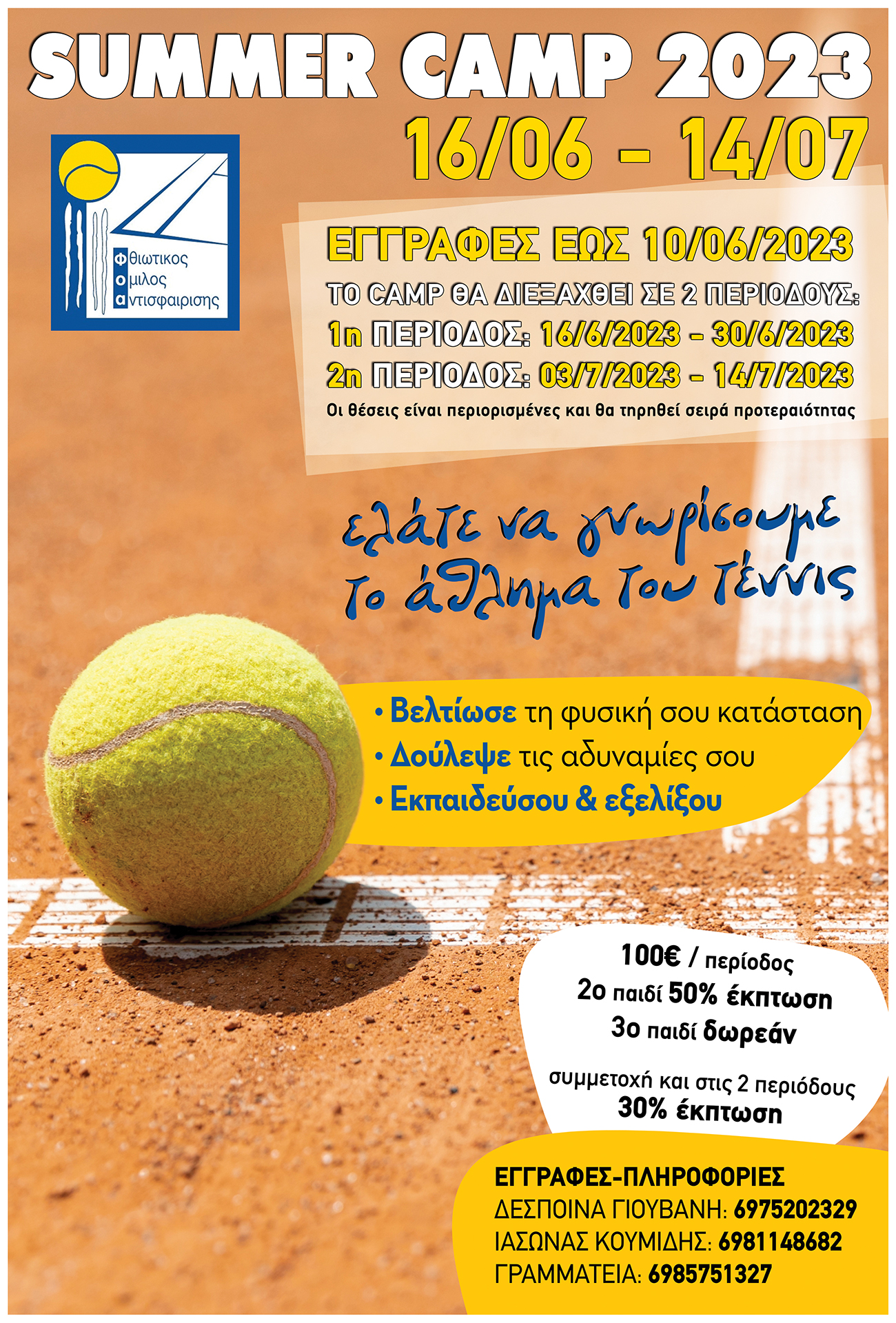 Μάθε όλες τις λεπτομέρειες για το καλοκαιρινό CAMP που διοργανώνει ο Φθιωτικός Όμιλος Αντισφαίρισης - Εγγραφές έως και 10/06/23!