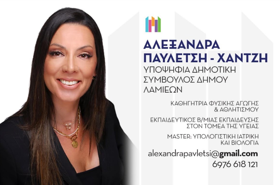 Οι νεότεροι βγαίνουμε μπροστά και αναπολώντας τα όμορφα χρόνια που πέρασαν, διεκδικούμε να ορίσουμε την τύχη και την πορεία της τοπικής κοινωνίας. Ευχή και στόχος μας να είναι άξια η πολιτιστική και φυσική κληρονομιά που θα αφήσουμε στα παιδιά μας ..», τονίζει η Υποψήφια Δημοτική Σύμβουλος Αλεξάνδρα Παυλέτση.