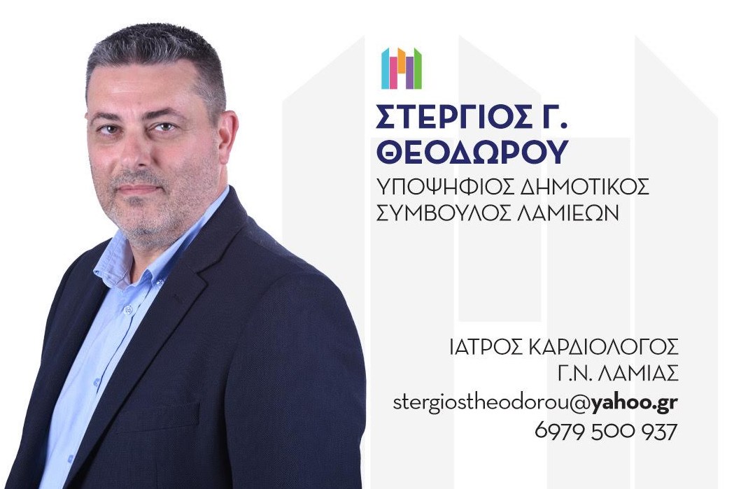 Ο καρδιολόγος Στέργιος Θεοδώρου, γέννημα θρέμμα Λαμιώτης και ένας επιστήμονας αναγνωρισμένης αξίας, από τους πιο αγαπητούς γιατρούς που προσφέρει εδώ και χρόνια τις υπηρεσίες του στην πρώτη γραμμή του Γ. Ν. Λαμίας, αποφάσισε πωςδεν θα μπορούσε να παραμείνει άλλο απλός θεατής«με τόσα έντονα προβλήματα που ταλανίζουν τον Δήμο μας τα τελευταία χρόνια»και κατέρχεται υποψήφιος με το συνδυασμό «Δύναμη ανάπτυξης για τη Λαμία», τουΠανουργιά Παπαϊωάννου.