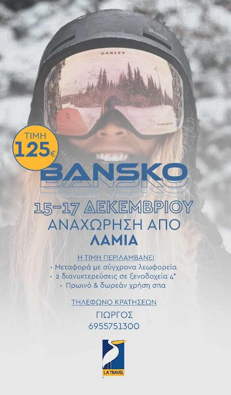 Ο Γιώργος Σπέλλας και το Pin Break για την πόλη της Λαμίας και το L.A. Travel σου υπόσχεται στιγμές μοναδικές στο Bansko με άκρως χριστουγεννιάτικη ατμόσφαιρα!