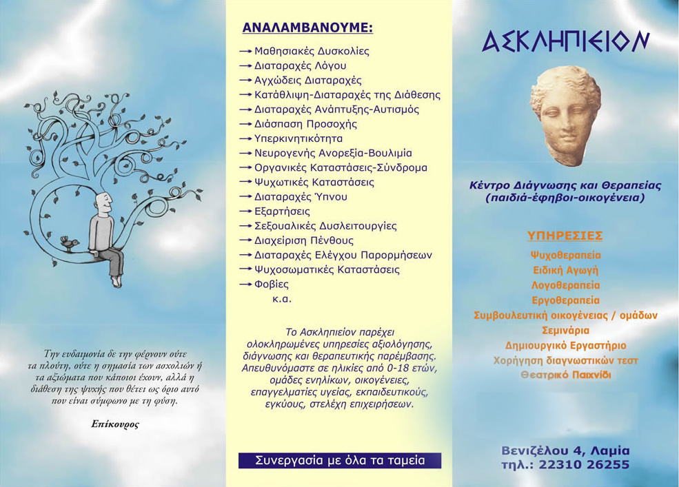 Ασκληπιείον: Κέντρο Διάγνωσηςκαι Θεραπείας (παιδία-έφηβοι-οικογένεια)