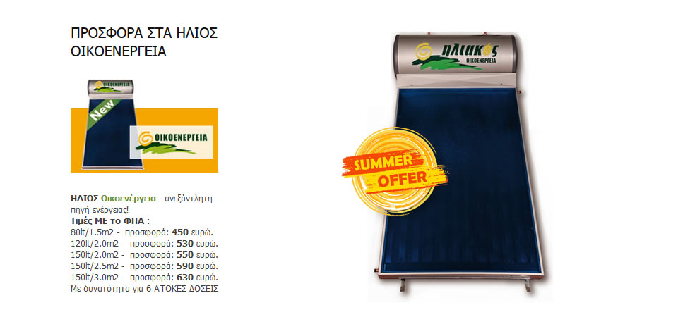 Δείτε παρακάτω τις εξαιρετικές προσφορές που έχει αυτό το καλοκαίρι η "Θερμοδυναμική Λαμίας", στα Γαλανέικα, και επωφεληθείτε από τη δυνατότητα που σας δίνει για αγορά με 6 άτοκες δόσεις.