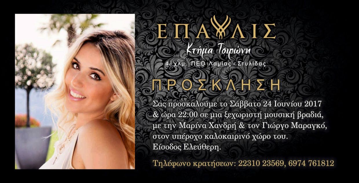 Απόψε πάμε «Έπαυλις» στη Λαμία - Έχει Live βραδιά στον κήπο με Μαρίνα Χανδρή!