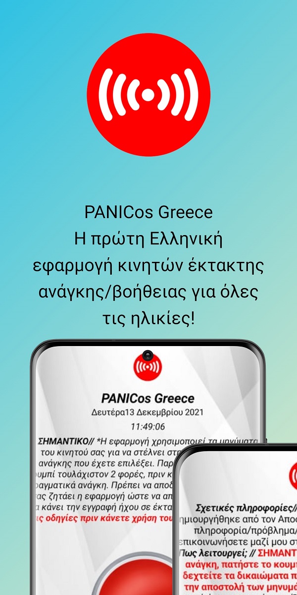 Μέσω της εφαρμογής PANICosGR μπορείς άμεσα και σιωπηλά να καλέσεις για βοήθεια σε περίπτωση έκτακτης ανάγκης. Η εφαρμογή είναι εύχρηστη και απλή ώστε να μπορεί να χρησιμοποιηθεί από όλες τις ηλικίες.